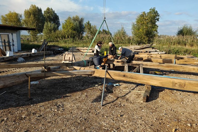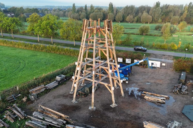 In oktober 2025 hebben we de achtkant opgebouwd. de Achtkant vormt de basis voor de molen. We bouwen daar onderdelen op en aan. Van dak tot omloop en van molensteen tot molenwieken.
