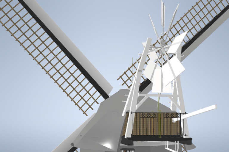 Een molen is pas een molen als er wieken aan zitten. Deze fase bestaat uit het afbouwen van de kap en het meest in het oog springende onderdeel van de molen: de wieken!